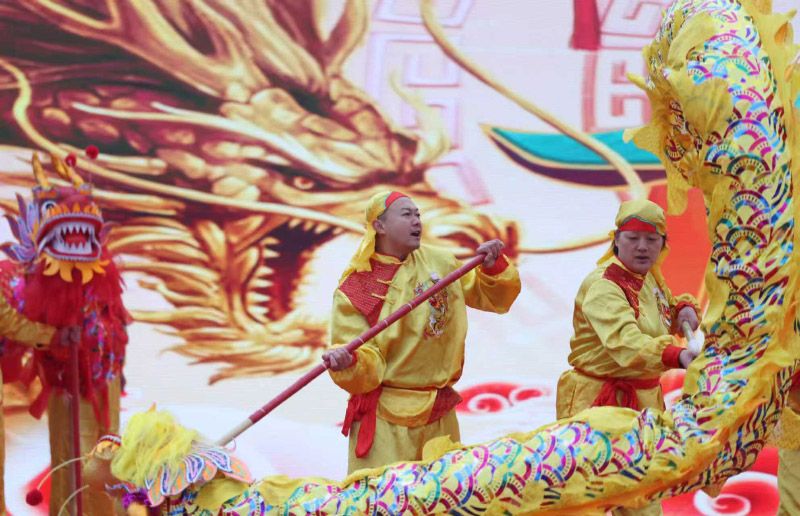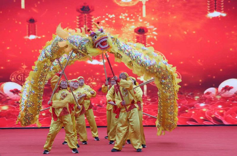 “二龙出水”“螺旋大跳龙”等经典高难度动作轮番上演,巨龙蜿蜒游走,活灵活现。