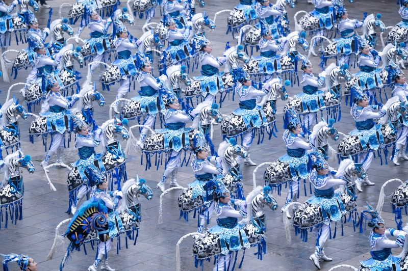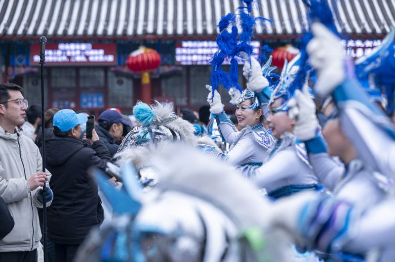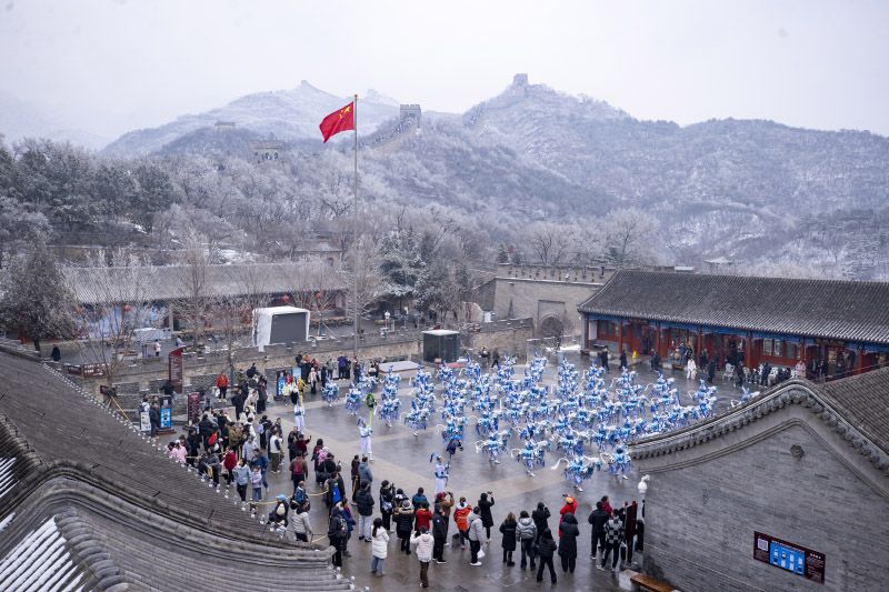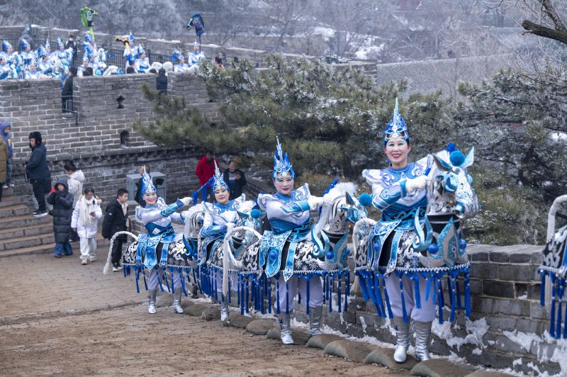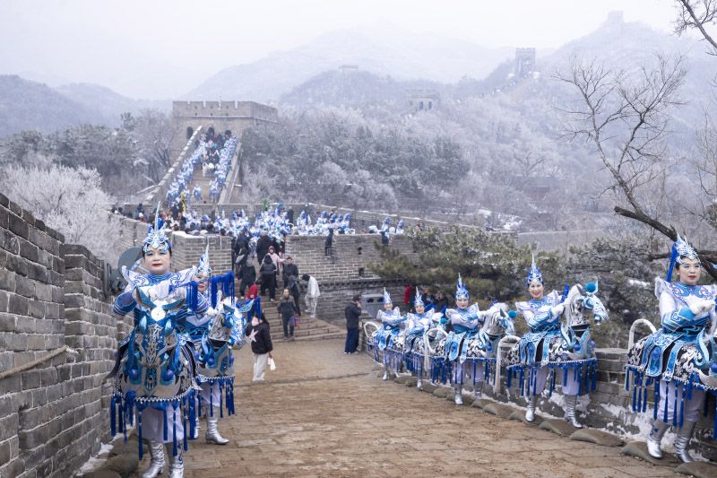 锣鼓铿锵竹马灵动,延庆百人“冰雪竹马”亮相八达岭