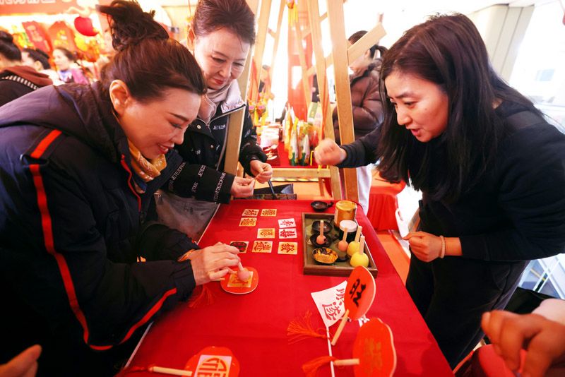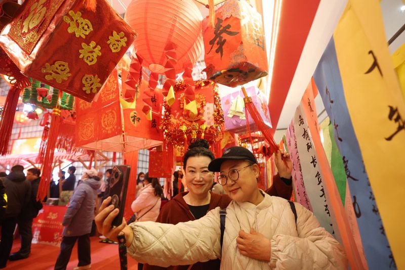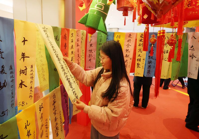 灯谜长廊挂满了趣味灯谜,吸引了众多市民驻足竞猜。
