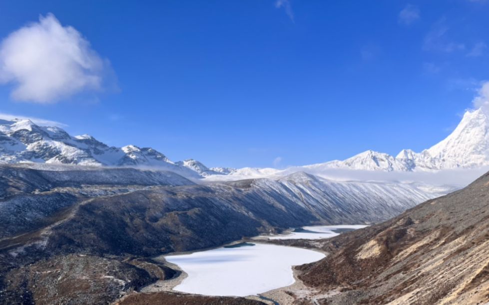 2月22日上午,从小垭口附近看到的库拉岗日和介久措。受访者供图