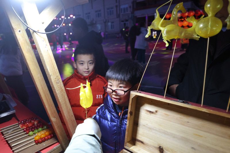 居民猜灯谜、逛市集。
