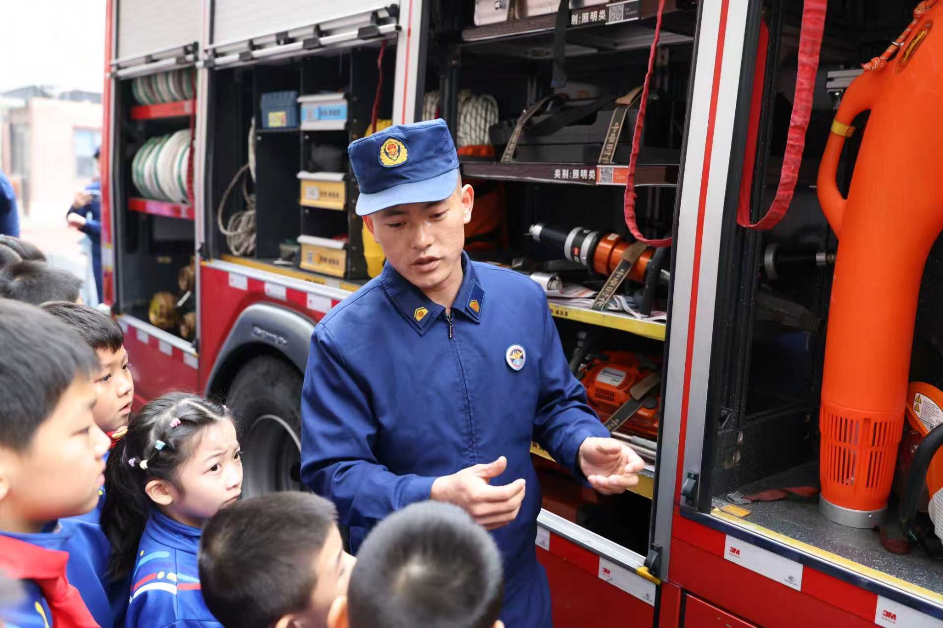 消防员耐心细致地向队员们讲解了消防车的构造,以及车上各类消防器材的名称、功能。海淀消防供图