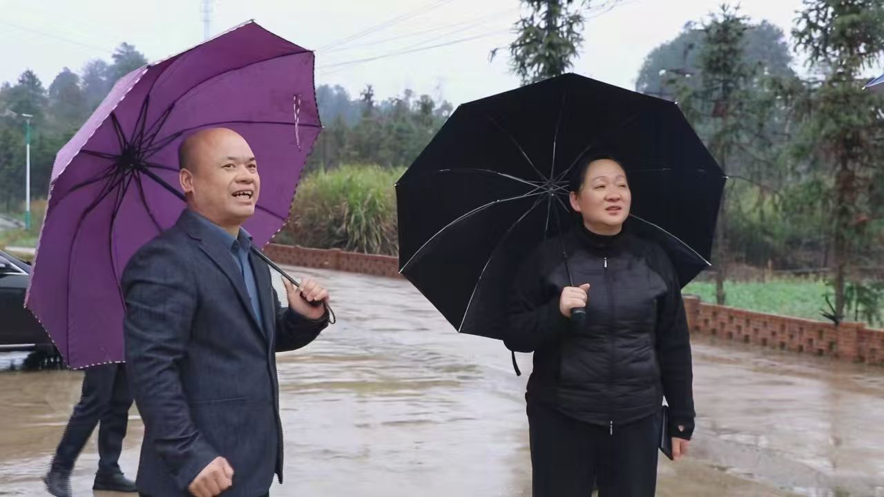 2026年2月26日,邓群(右)调研塔峰镇乡村振兴工作。图源/蓝山发布
