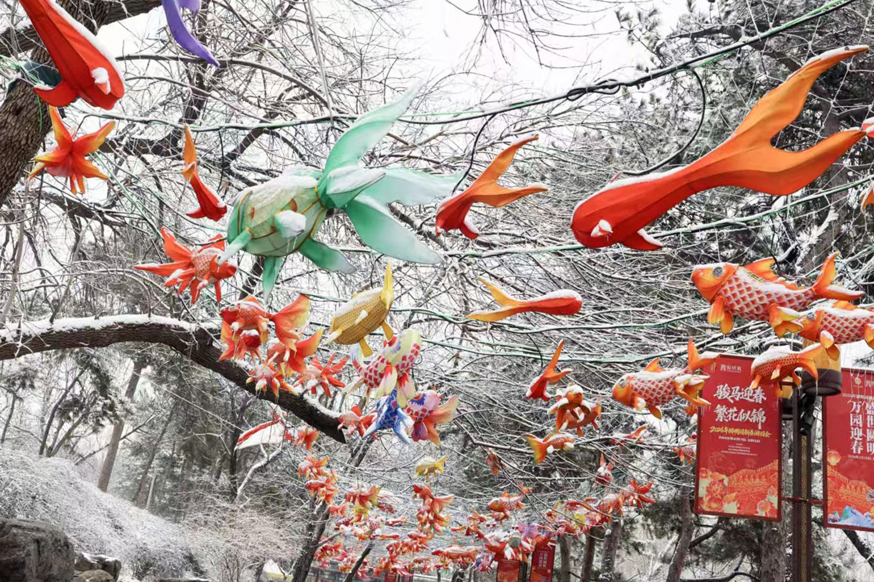 恰逢新春灯会未撤,更添“雪打灯”之浪漫。