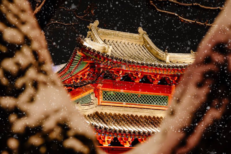 雪落宛平 灯火映古垣