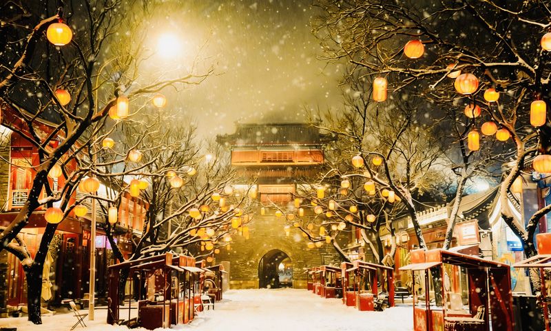 3月4日22时,宛平城落雪,雪花纷飞间,灯火映照着古垣,街巷间仍洋溢着节日余温,一步一景皆成画卷。