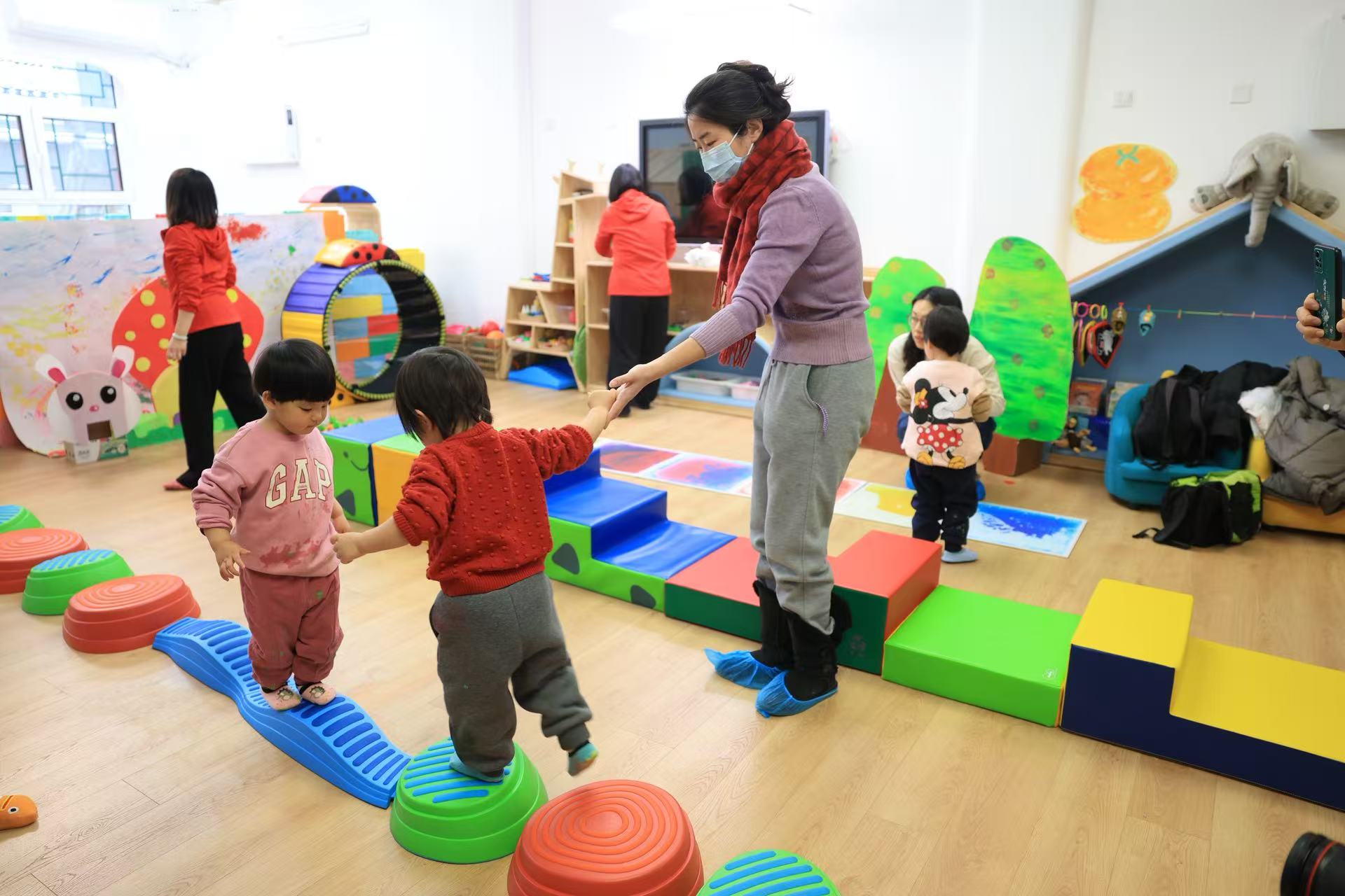 北京市朝阳区朝花幼教集团晓月园执行园长陈海娟告诉记者,为了给家长和孩子提供更专业、更科学的育儿支持,幼儿园对场地进行了专门改造,“现在园所有两个标准的托班教室,里面有绘本、玩具等各种教具,给孩子丰富的探索空间。”此外,还同步推进医育融合,定制分龄营养食谱,配备60名营养师与88名持证保健医,联动专业医疗机构,为亲子活动的开展提供全方位健康护航。
