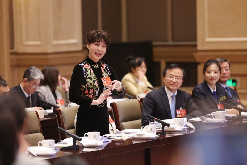 全国人大代表顾卫英现场展示《牡丹亭·游园》唱腔。