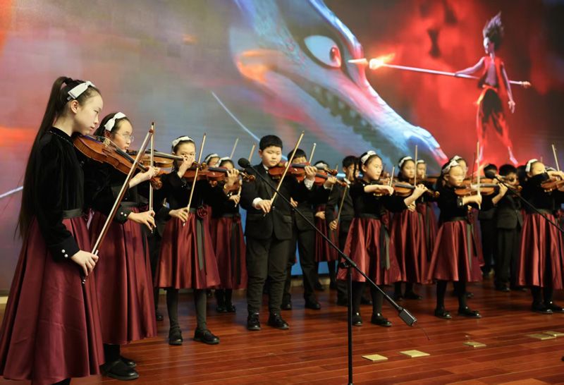 中关村二小金帆乐团为全场嘉宾献上《丝海弦音》。