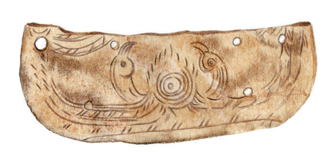 河姆渡文化时期的双鸟朝阳纹象牙蝶形器。《飞羽之美》插图