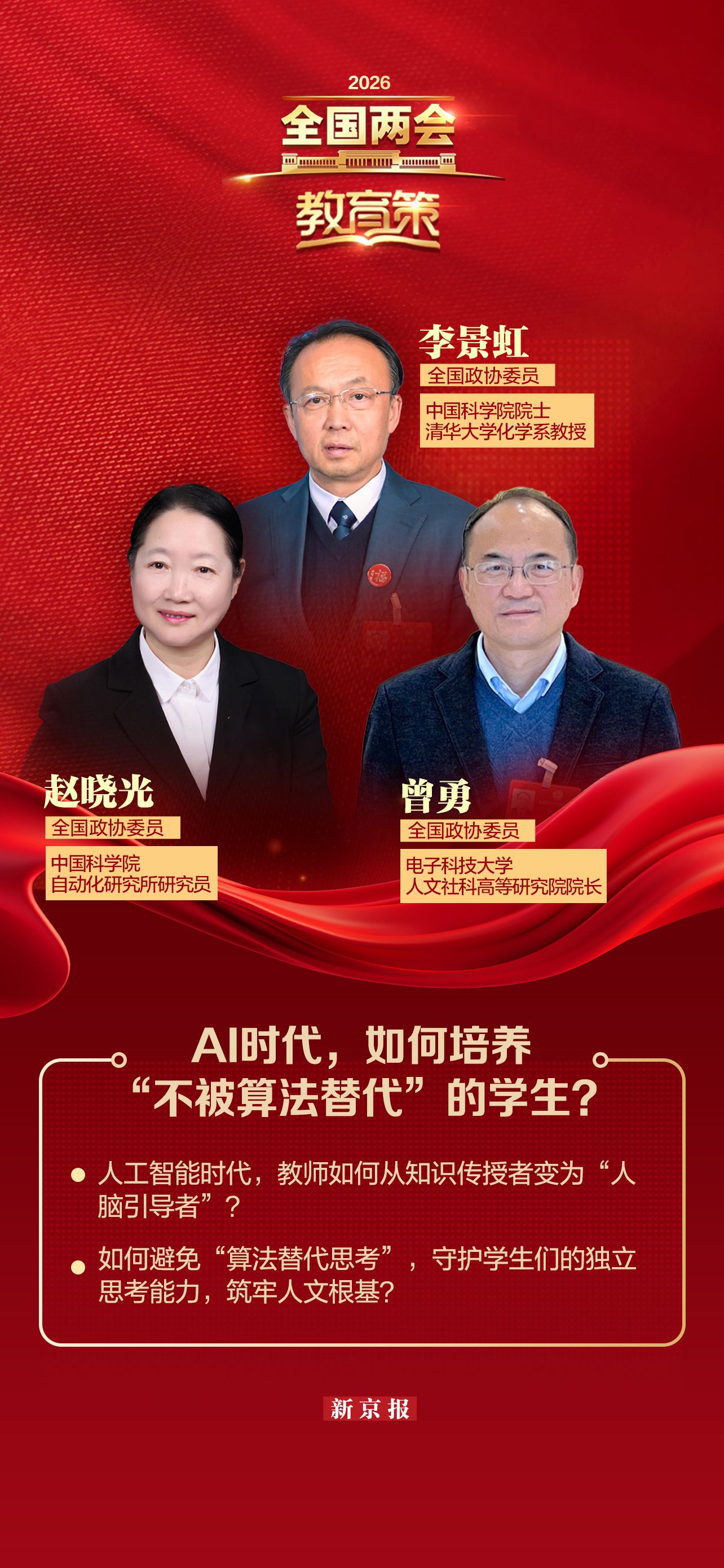 “AI时代,更需要培养学生的批判性思维、逻辑性思考和创造性想象的能力。”全国政协委员、电子科技大学人文社科高等研究院院长曾勇强调。