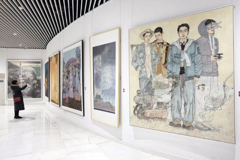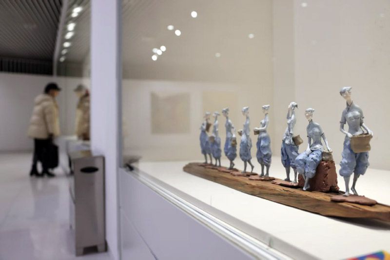 观众欣赏入选优秀作品。经过专家委员会评审,最终评选出入选作品230件,其中优秀作品68件,包括中国画、油画、水彩·粉画、版画、综合材料绘画、雕塑、陶艺等。