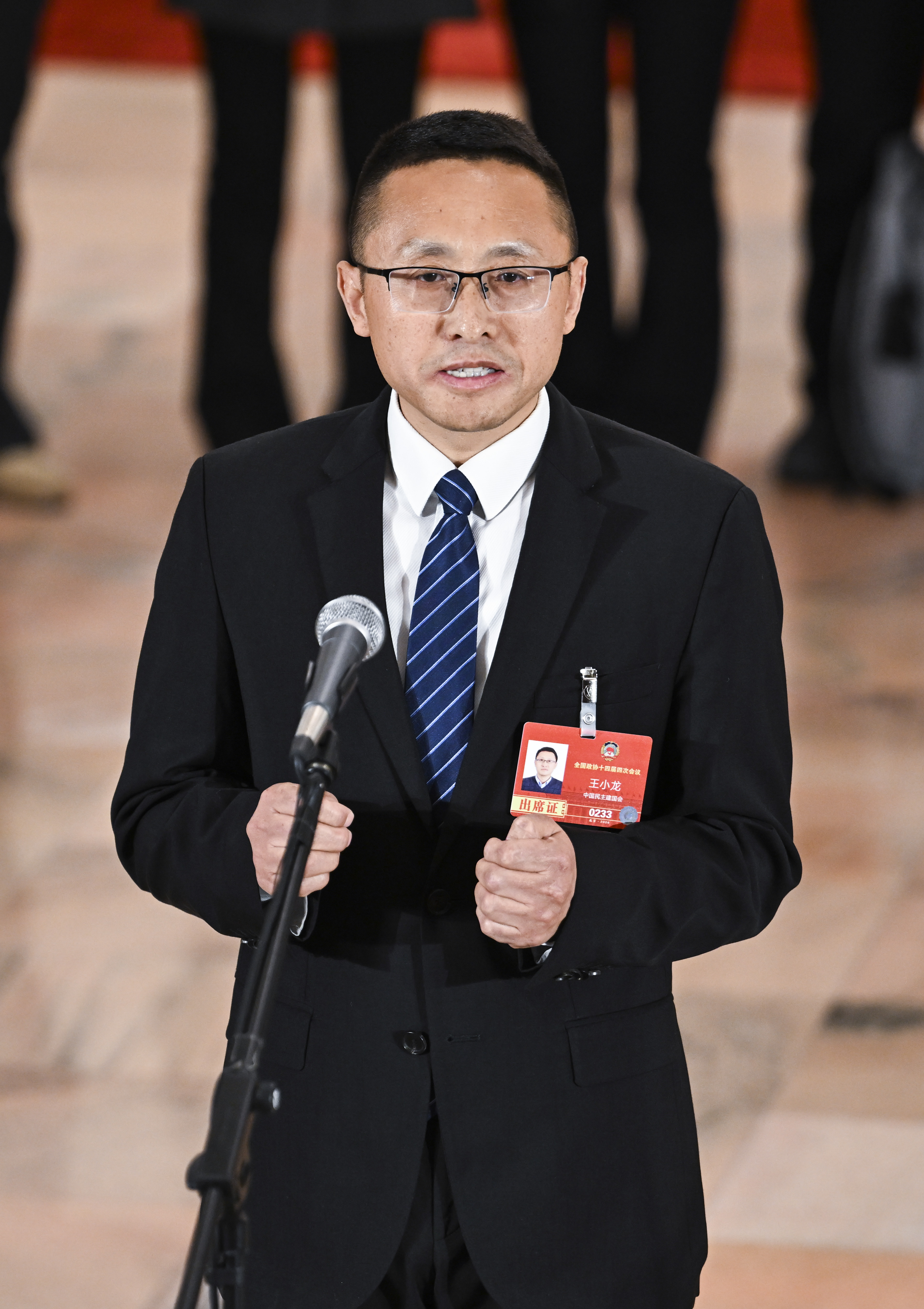 3月7日,全国政协十四届四次会议第二场“委员通道”集体采访活动在北京人民大会堂举行。这是全国政协委员王小龙接受媒体采访。新华社发