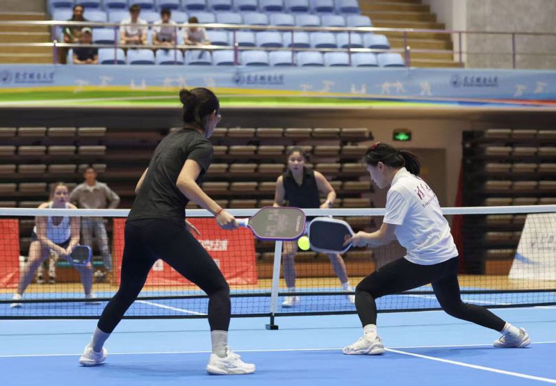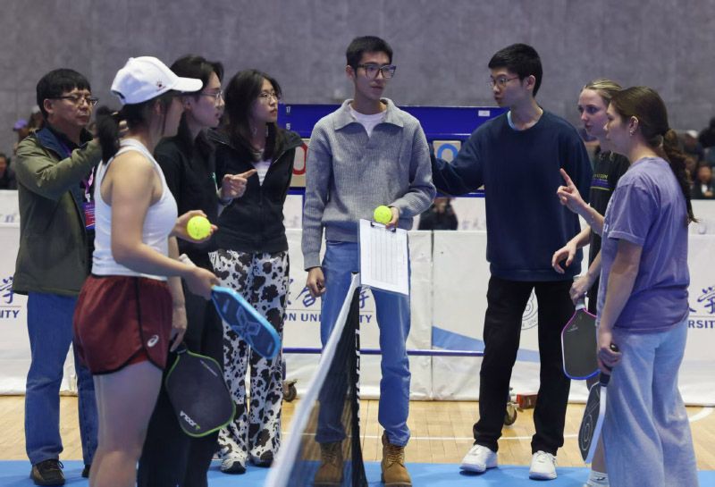 中美大学生进行匹克球女双友谊赛。匹克球作为全球增长最快的运动之一,因其与中国传统球拍运动技巧高度契合,在中国正经历爆发式增长,预计五年内参与者有望突破1亿。本次活动特别注重推动DUPR(动态通用匹克球评级)系统在中美院校间的标准化应用,助力中国完善相关人才培养体系。
