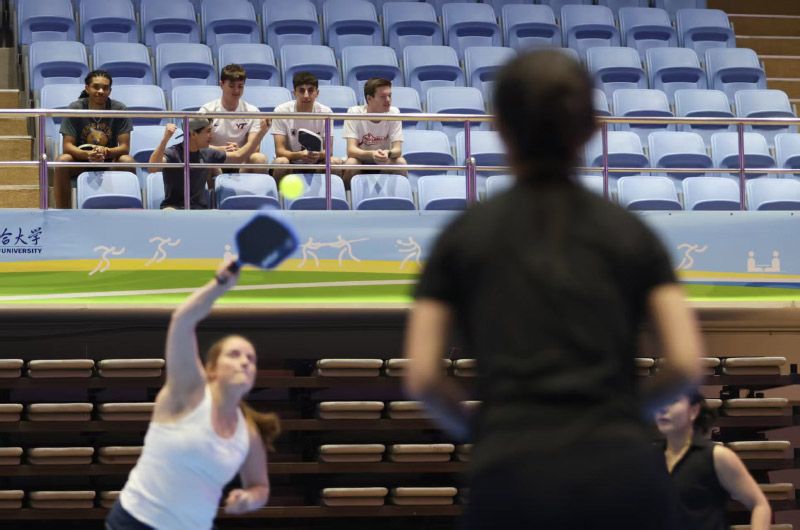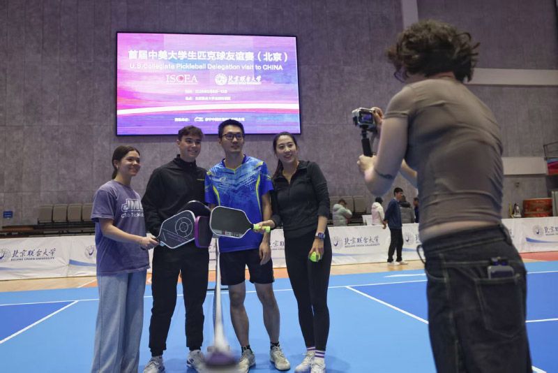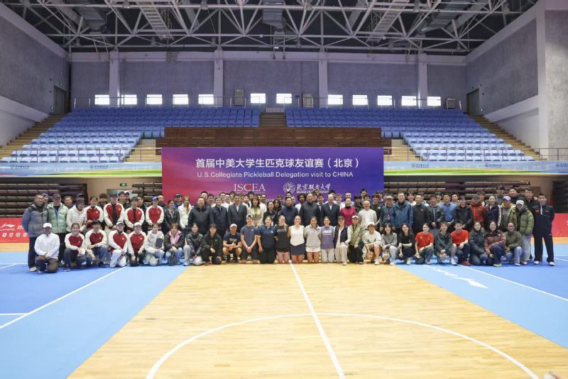 中美大学生进行匹克球混双友谊赛。本次访华团由20多位来自詹姆斯麦迪逊大学、弗吉尼亚理工学院、凯斯西储大学等美国顶尖大学的球员和教练组成,其中不乏全美排名前三的明星球员与职业级教练。他们将在北京、石家庄、成都三地,与清华大学、北京大学、中国人民大学、四川大学等11所中国高校进行友谊赛、混编训练及校园访问,并参访国家乒乓球训练基地、游览历史文化名胜,深度体验中国。