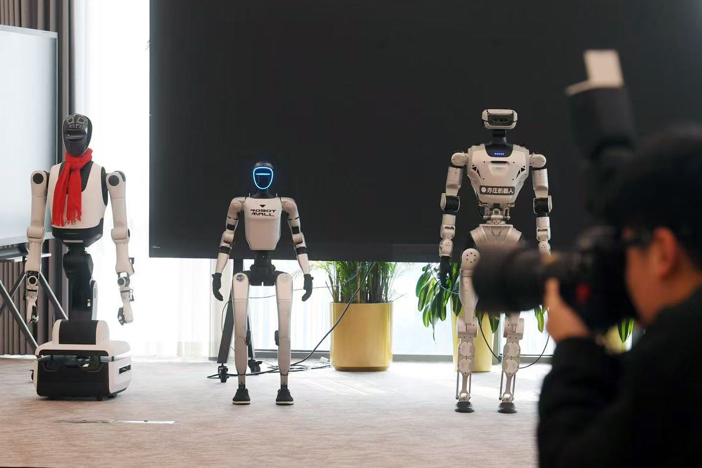 3月8日, 2026北京亦庄人形机器人半程马拉松及机器人勇士挑战赛集训营正式开营。图为机器人做展示。新京报记者 李木易 摄
