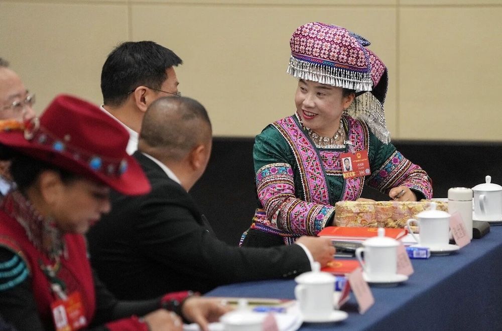 3月7日,中国职工之家, 一名人大代表盛装参加云南代表团团组会议。