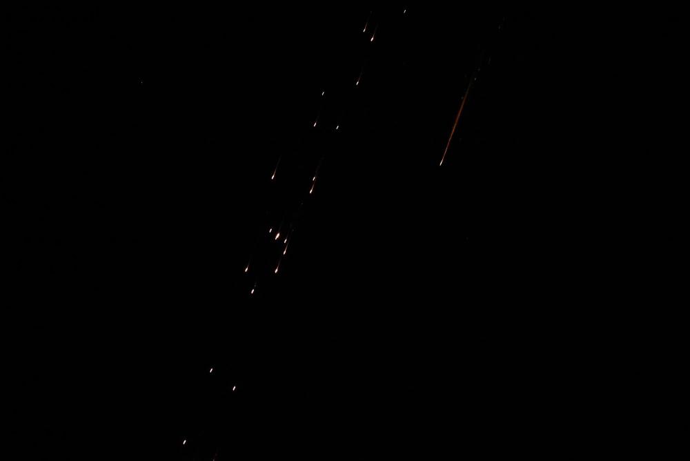 3月9日,在耶路撒冷上空,以军防空拦截弹击中导弹,导弹碎片落下。新华社发(贾马尔·阿瓦德摄)