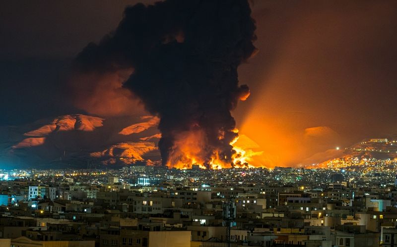 当地时间2026年3月7日,伊朗德黑兰,美国和以色列对伊朗发动军事打击,伊朗石油设施遭空袭,浓烟滚滚。图/IC