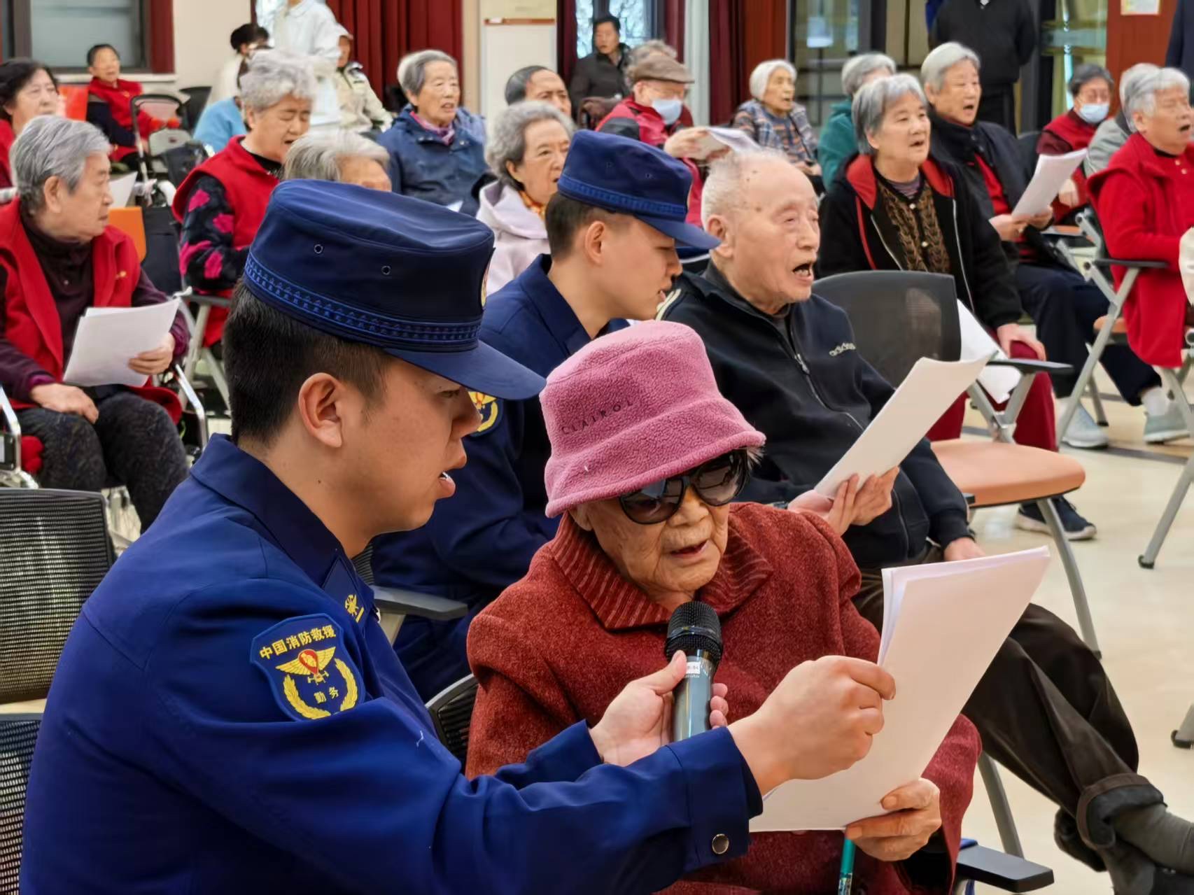 在随后的雷锋精神座谈环节,老人们深情讲述雷锋事迹、分享亲身感悟,现场氛围温暖感人。消防救援人员认真聆听、用心交流,深刻感悟新时代雷锋精神的内涵。活动最后,消防员和老人们共同唱响《学习雷锋好榜样》,铿锵的歌声在养老院里久久回荡。