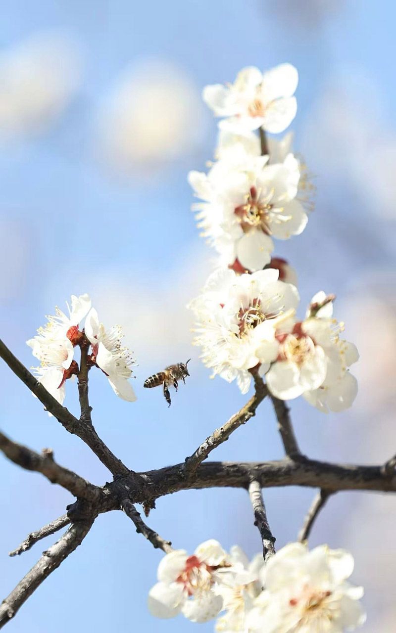 3月11日,位于北京左安门角楼周边的山桃已经绽放,吸引不少市民前来拍照打卡。