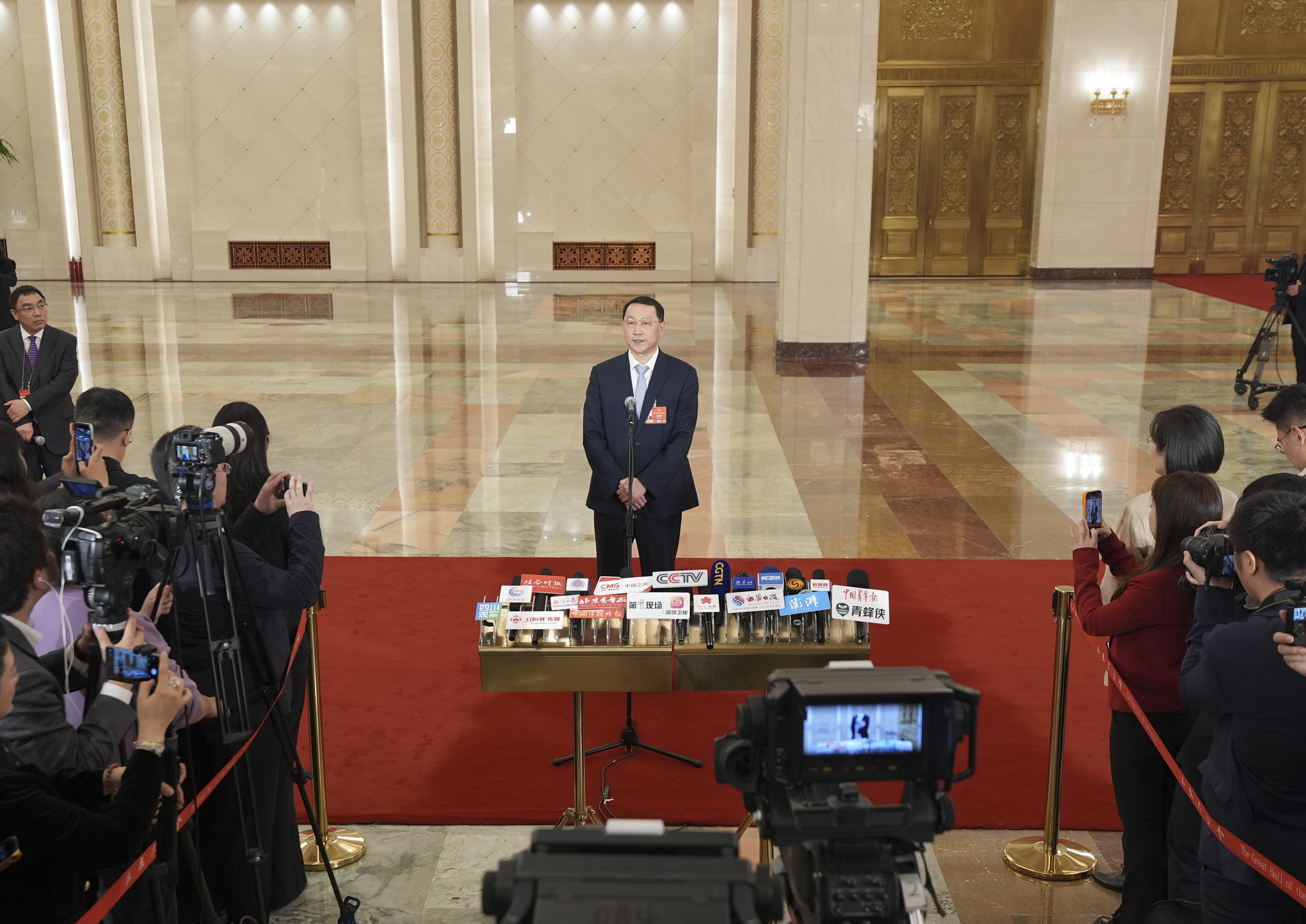3月12日,十四届全国人大四次会议第三场“部长通道”在人民大会堂举行,自然资源部部长关志鸥接受记者采访。