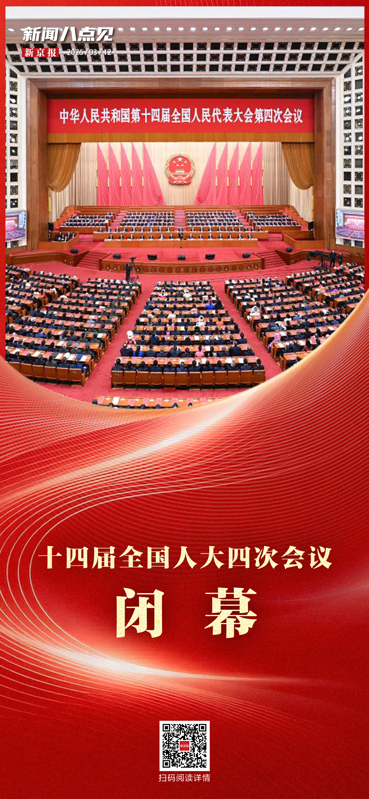 3月12日,十四届全国人大四次会议在北京人民大会堂举行闭幕会。新华社记者 张领 摄