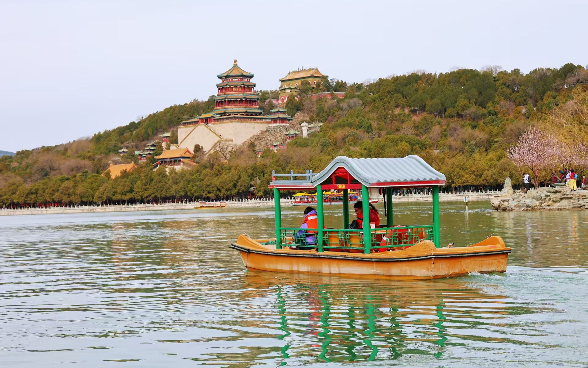 随着春季候鸟迁徙高峰到来,昆明湖水域不时可见绿头鸭、鸳鸯等水鸟嬉戏觅食,为泛舟增添了几分野趣。工作人员提醒游客,乘船赏春时,请注意保持安全距离,不要惊扰、投喂水鸟。