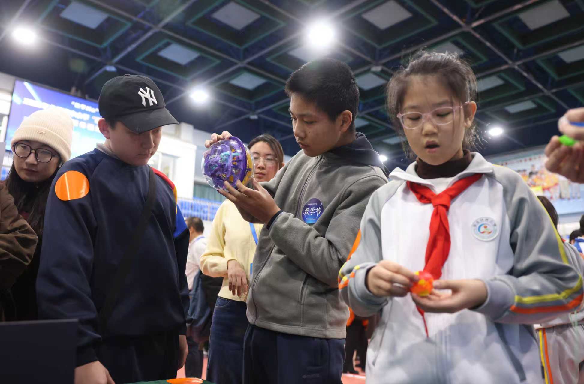 记者了解到,创新体验场设置三大特色数学动手实践项目,其中“掷球计数”将概率统计与运动游戏结合,让学生在日常训练中直观感知数理规律;“矩阵争锋·博弈拔河”融入博弈论思想,实现力量比拼与思维决策的双重碰撞;“π队行动·跨学段接力”则把数学答案转化为体育动作,让抽象的数学符号在日常体育活动中变得可感可知。
