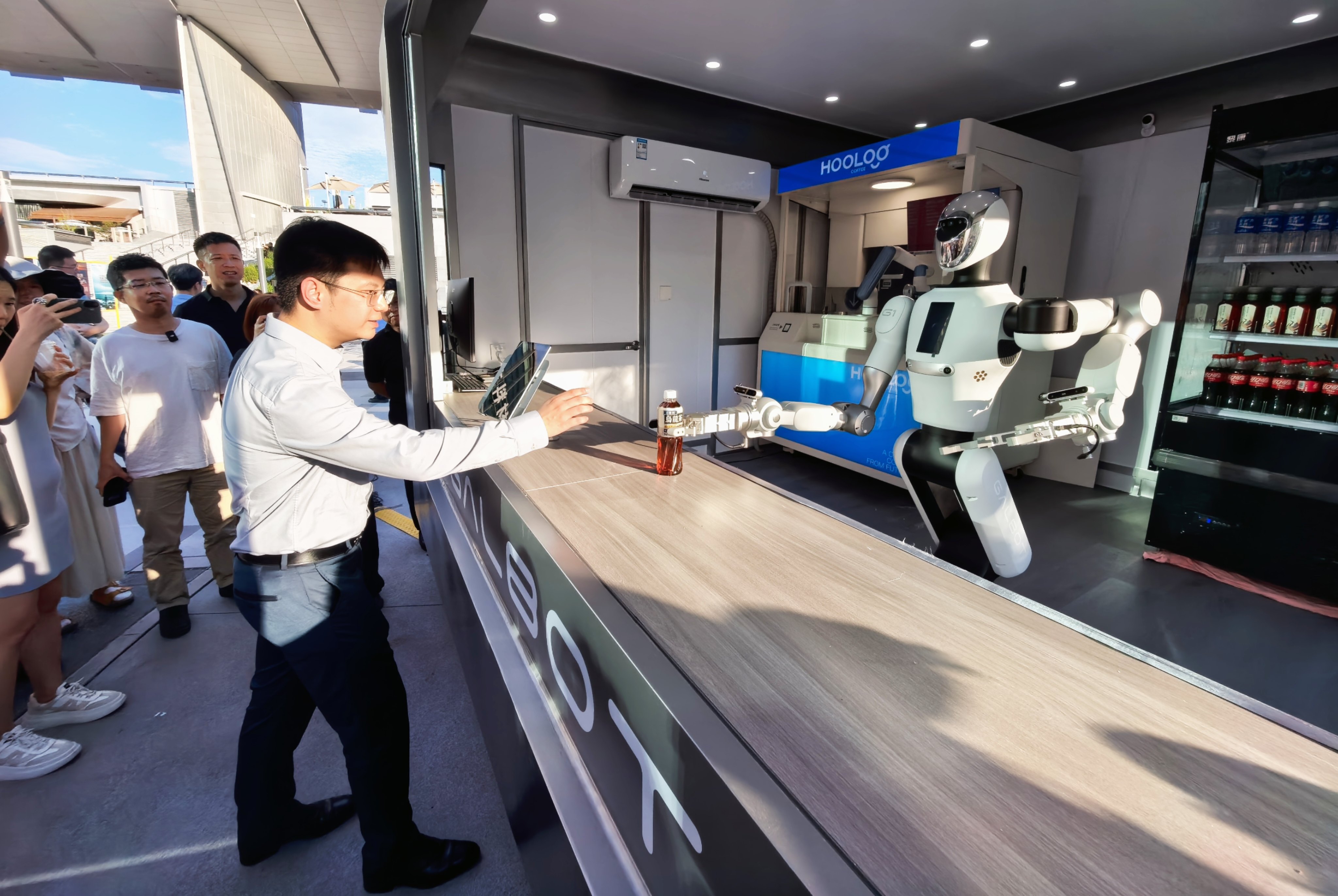 2025年8月7日,全球首个具身智能机器人当店员的“智慧小卖部”银河太空舱亮相中关村大融城。资料图/新京报记者 浦峰 摄