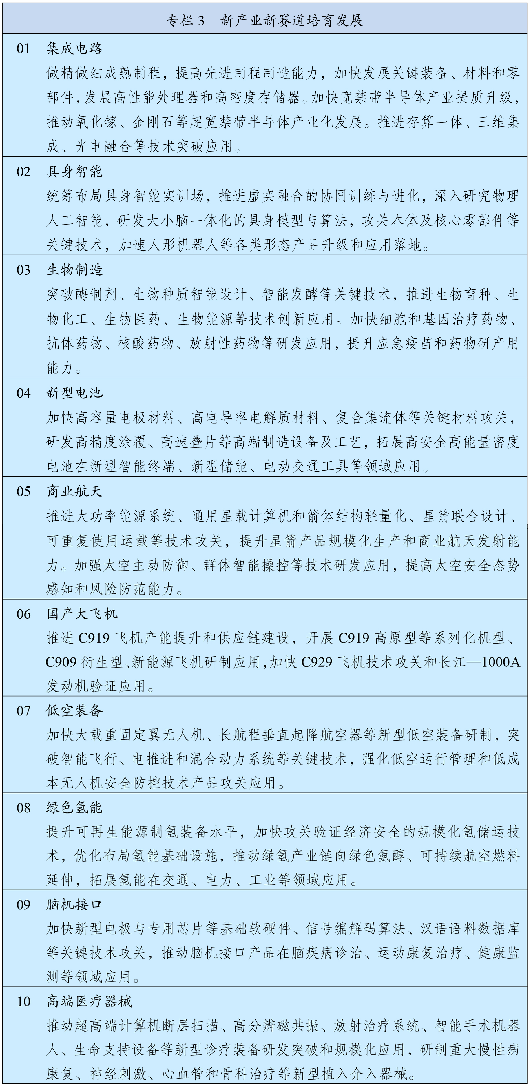 从具身智能到生物制造,从新型电池到绿色氢能,越来越多的新技术正在走出实验室,走进一个个应用场景,全面重塑产业格局和经济社会发展的未来。3月13日发布的《中华人民共和国国民经济和社会发展第十五个五年规划纲要》提出,未来五年,我国将“培育壮大新兴产业和未来产业”,同时提出了包括具身智能、国产大飞机、脑机接口、低空装备等十大“新产业新赛道”。