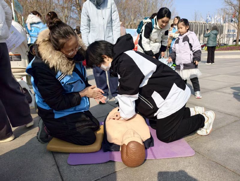 志愿者教市民急救知识。