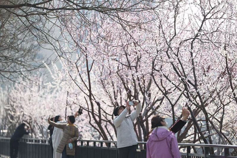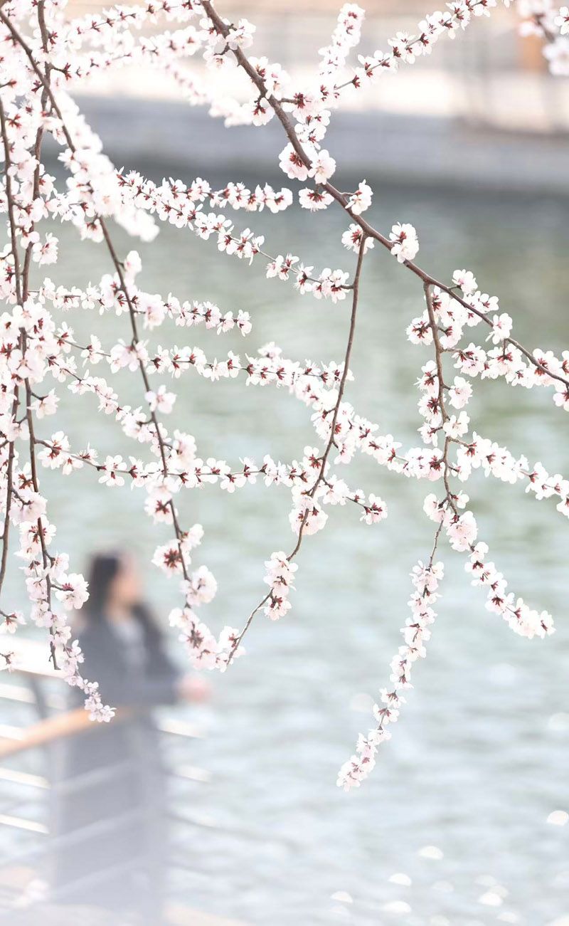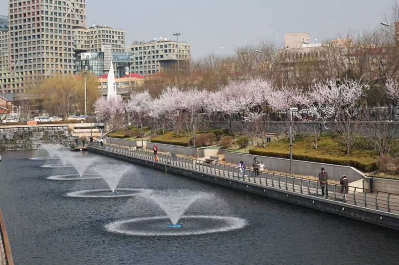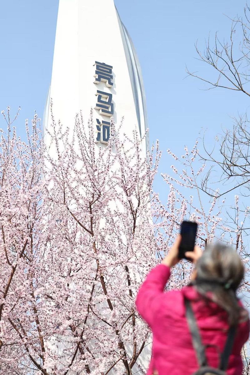 亮马河畔种植了碧桃和山桃两个品种,共计200余棵桃树。