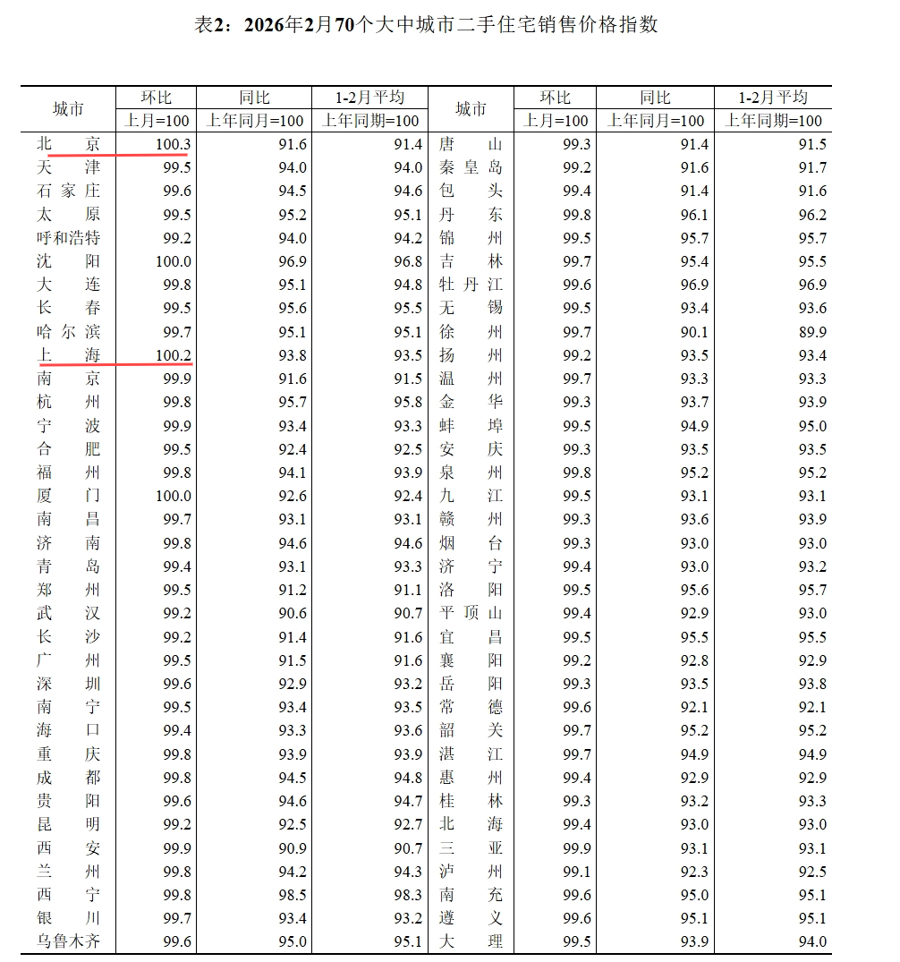 3月16日,国家统计局发布《2026年2月份70个大中城市商品住宅销售价格变动情况》。对此,国家统计局城市司首席统计师王中华解读称:“2026年2月份,总体看70个大中城市商品住宅销售价格环比降幅继续收窄、同比下降。新建商品住宅销售价格环比上涨或持平城市个数比上月增加。”