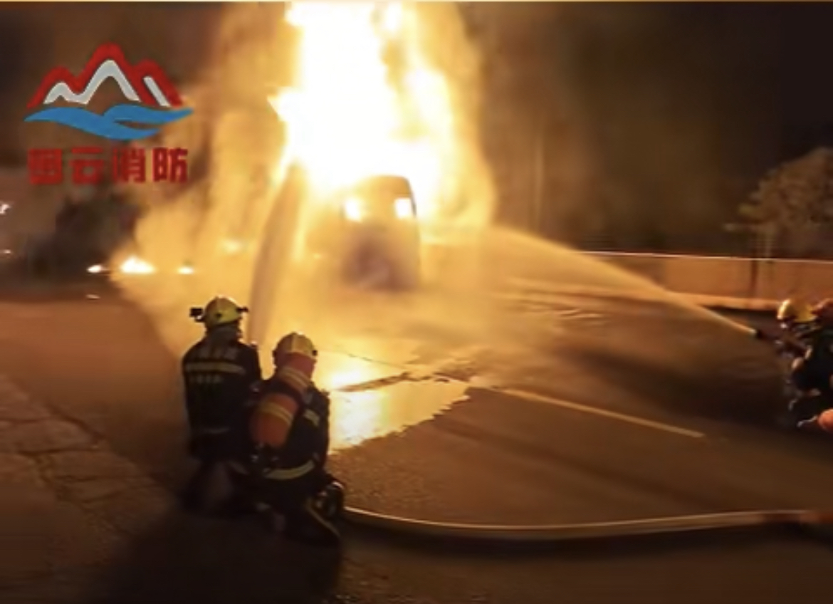 密云消防立即启动应急预案,调集5站20车105名指战员赶赴现场,密云区应急办第一时间联动公安、交通、属地等部门到场联合作战。首支救援力量于0时12分到达,全勤指挥部及后续增援力量于10分钟内相继到达,救援人员兵分三路,第一组封闭国道、疏散群众、现场警戒,第二组架设4支泡沫枪对着火车辆进行灭火、对流淌火进行泡沫覆盖灭火、对蔓延至层林中的火势进行扑灭,同时对液化天然气罐体及地下通道火势进行持续注水降温、泡沫覆盖,严防爆炸,第三组协同专业力量对油罐进行倒罐。