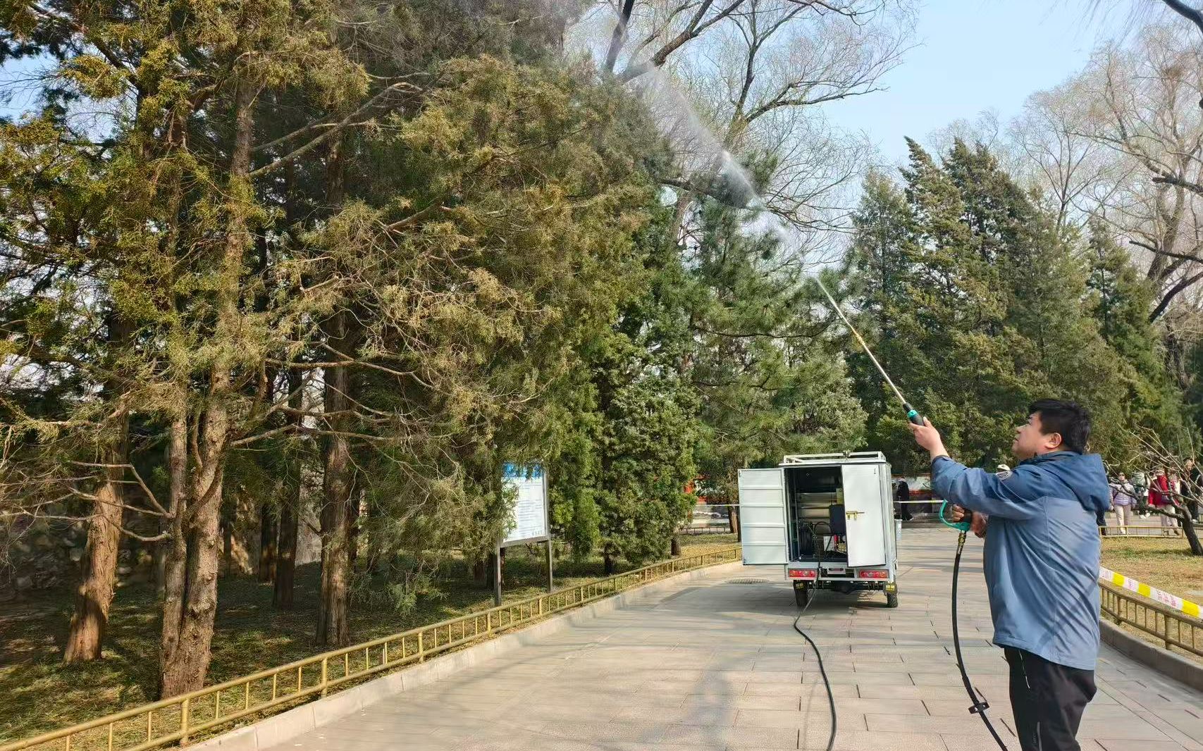杨柳飞絮治理。4月上旬至5月下旬北京市将进入杨柳飞絮高发期,绿化工作人员将对校内主干道杨柳树开展高空喷雾、喷水作业,将树冠上的飞絮提前冲刷下来,对已降落的飞絮进行洒水并及时清理,减少二次飘絮。