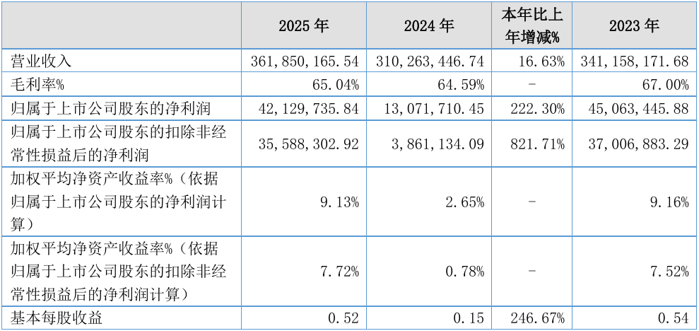 同日,海能技术发布2025年年报显示,公司全年实现营业收入3.62亿元,同比增长16.63%;归母净利润4212.97万元,同比增长222.30%;扣非归母净利润3558.83万元,同比增长821.71%;经营活动产生的现金流量净额为5052.12万元,同比增长80.52%;报告期内,海能技术基本每股收益为0.52元,加权平均净资产收益率为9.13%。公司2025年度分配预案为:拟向全体股东每10股派现1元(含税)。