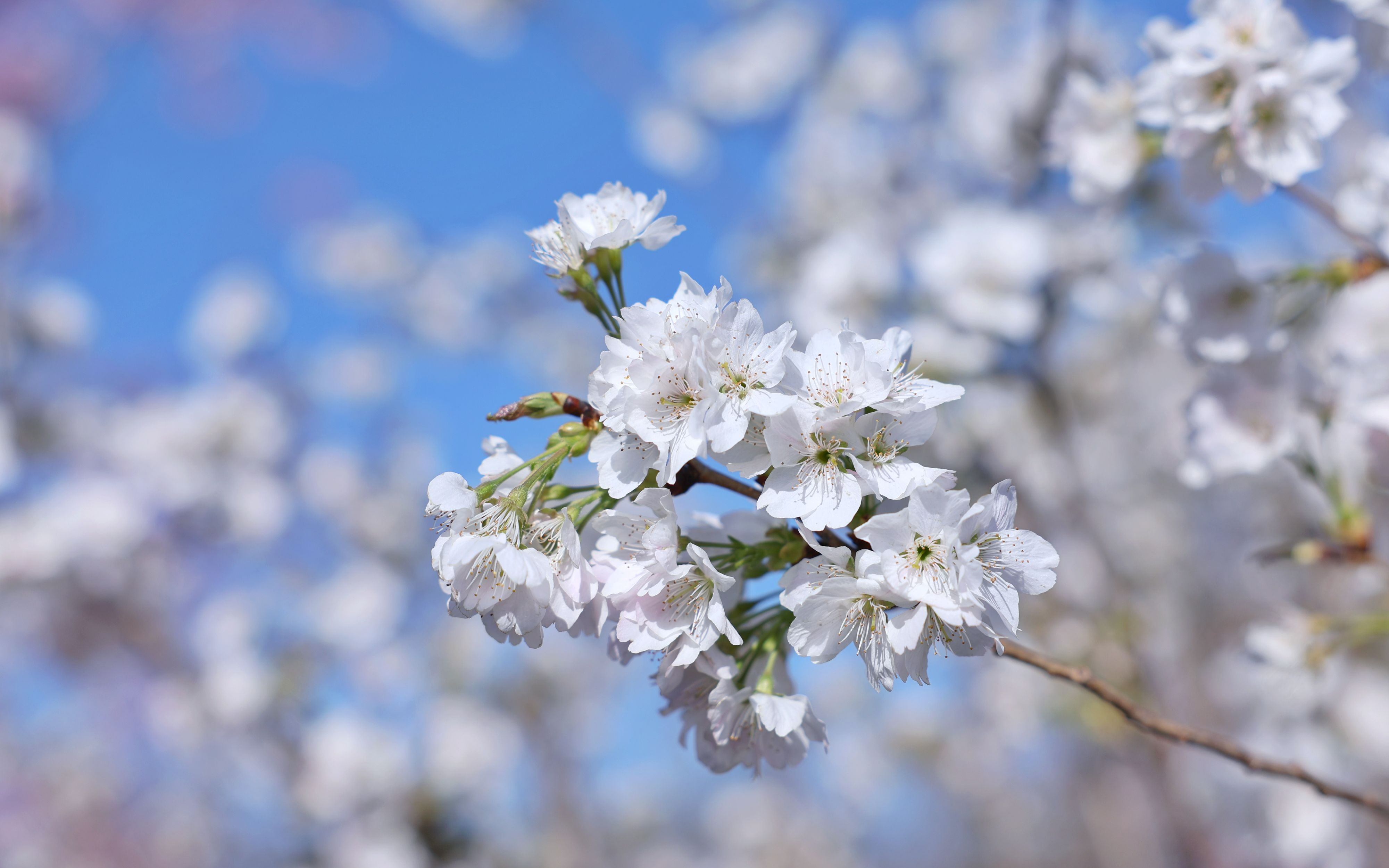 “奖章樱”同样为半重瓣樱花品种,花色清透淡雅,适宜户外栽植,最大亮点是可春秋两季开花,因休眠较浅,在温度适宜的促培大棚中极易实现复花,在户外暖冬环境下也有开花的可能。