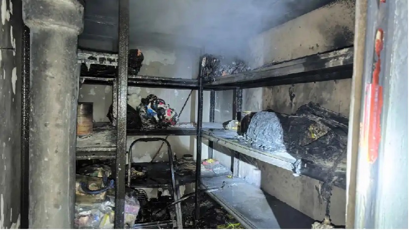 事发储物间大量物品被烧毁。 朝阳消防供图