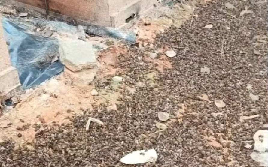 彭先生蜂箱附近的死蜂。受访者供图