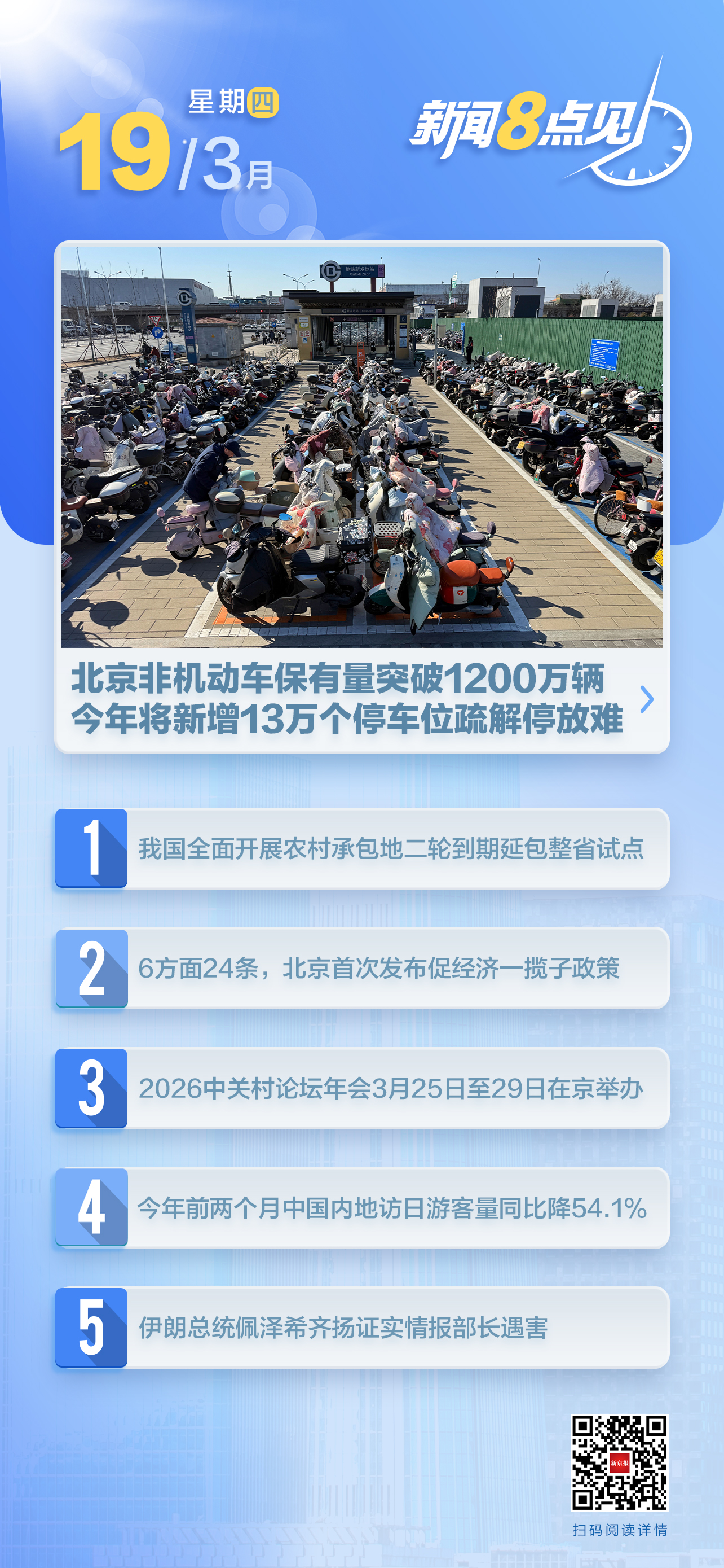 目前,北京非机动车保有量已突破1200万辆,超五分之一出行者选择非机动车出行。记者从北京市交通委获悉,近日,北京市正式发布《2026年非机动车停放秩序治理专项行动计划》,将“增供给”列为率先突破任务,明确全年新增非机动车停车位13万个;同时,全面摸排2015年以来新建重点公共建筑停车设施配建及开放情况,对未达标、被挪用或未开放的,推动内部车辆“进门进院”,预计可释放有效停车位3万个。(新京报)阅读全文>>>