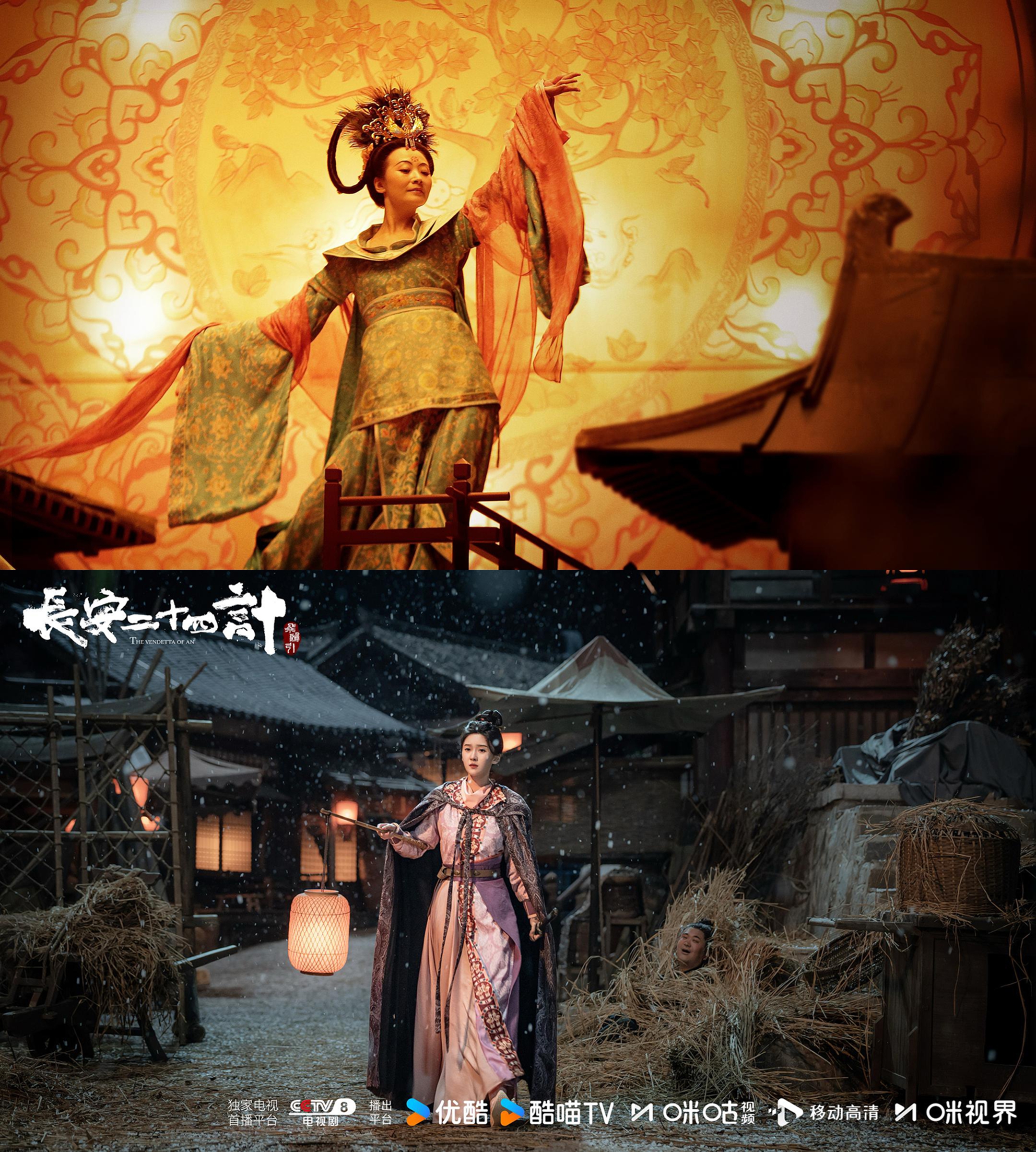上下图分别为《长安十二时辰》《长安二十四计》剧照。