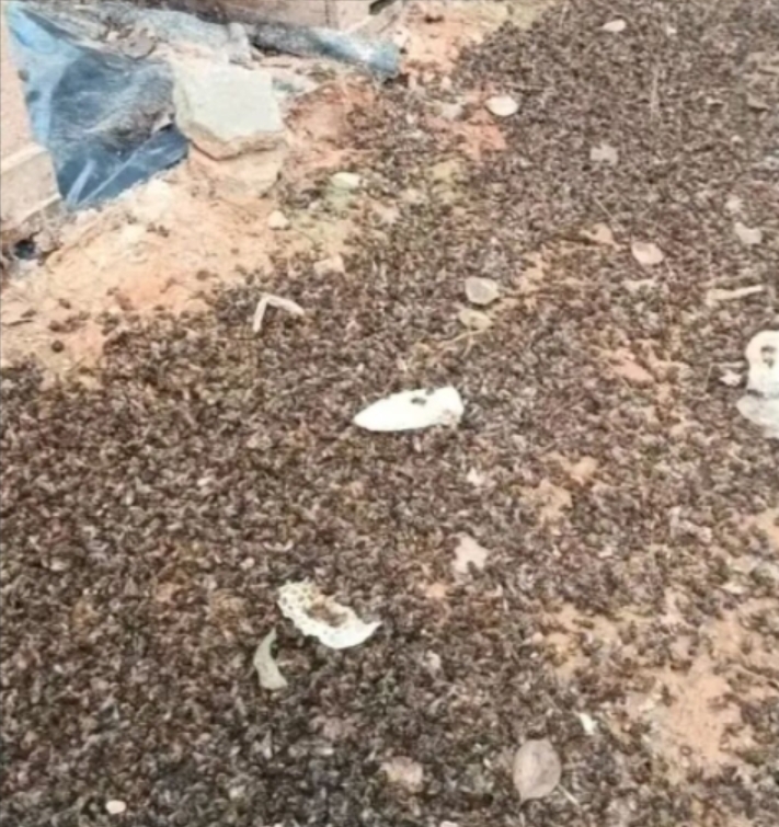 ▲江西南昌安义县蜂农彭先生蜂箱附近的死蜂。图/新京报