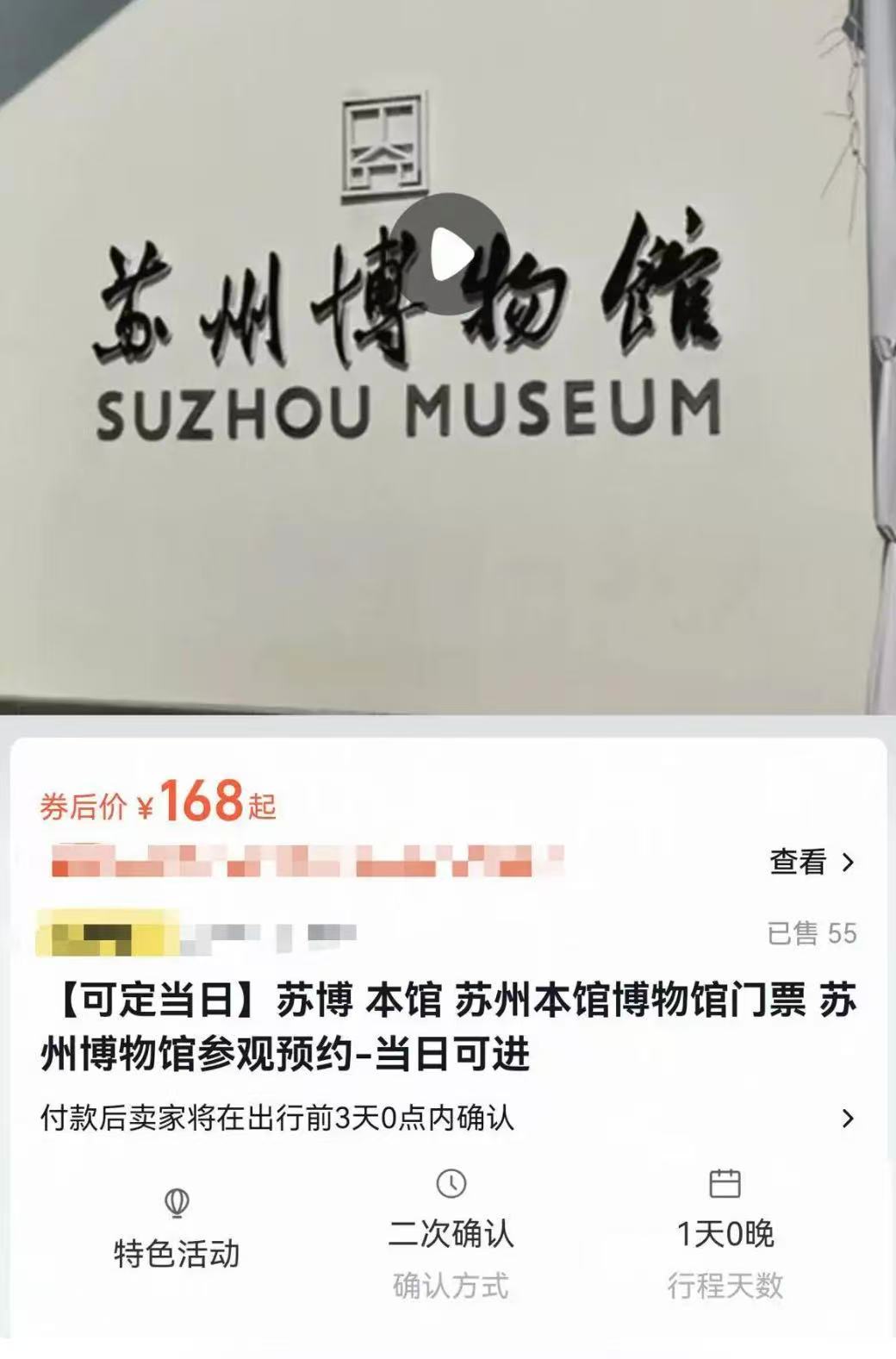 ▲网上发帖称,168元可预约当天苏州博物馆门票。图/极目新闻