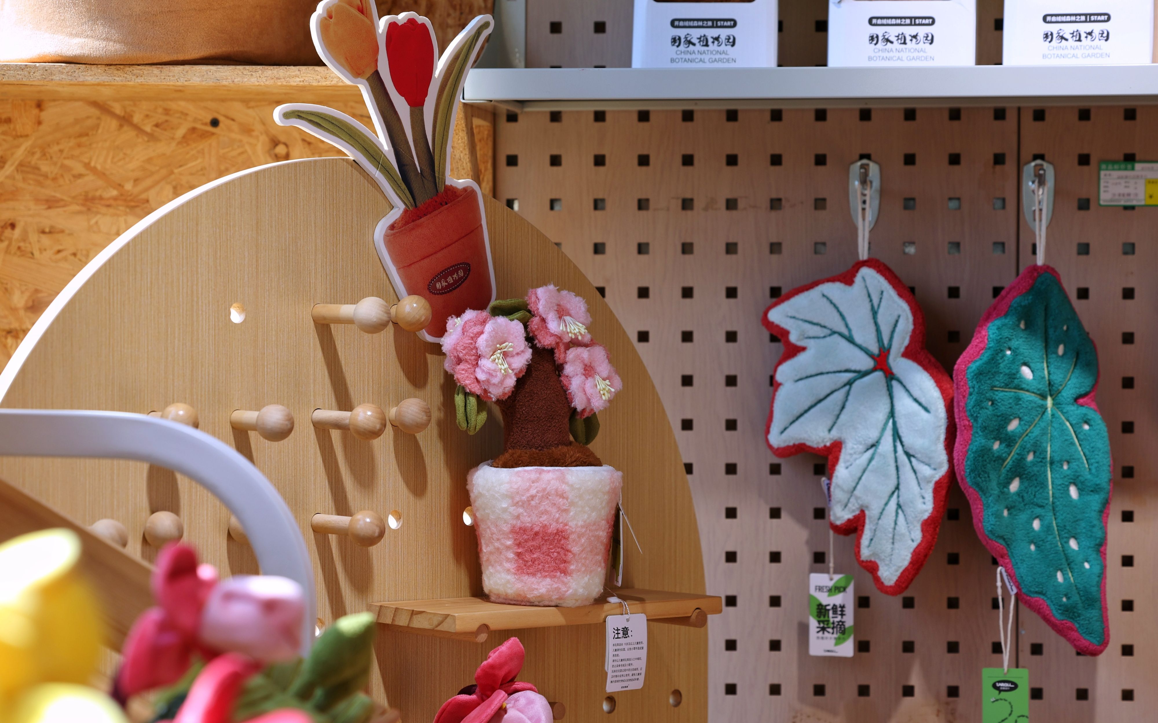 3月20日,国家植物园(北园),山桃花系列文创产品热卖。新京报记者 薛珺 摄