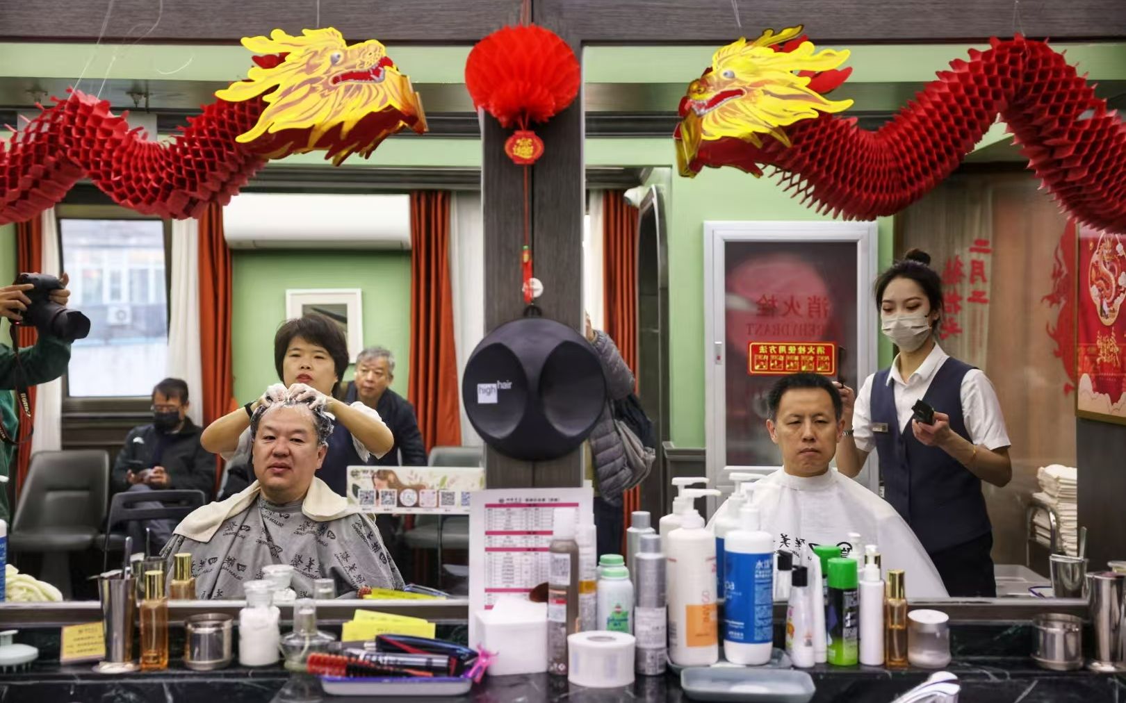 一位老师傅正为顾客修整鬓角,手法沉稳利落。“每年‘二月二’,到这里来理个发,不只是换个发型,更像是赴一场老北京的仪式。”特意赶早来的常客李女士说。