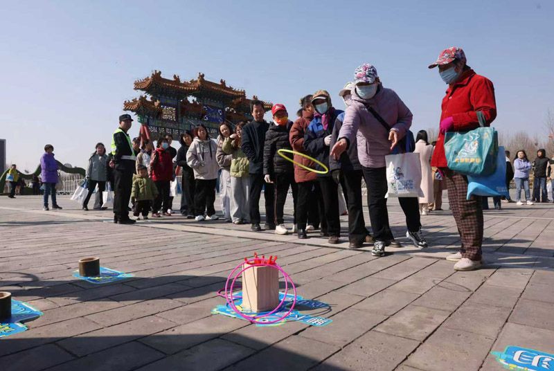 科普活动区,居民通过套圈游戏学习节水小妙招。