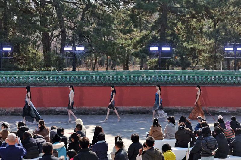 日坛公园圜坛区域打造为北京时装周“春分首秀”主场景,模特依次登场。