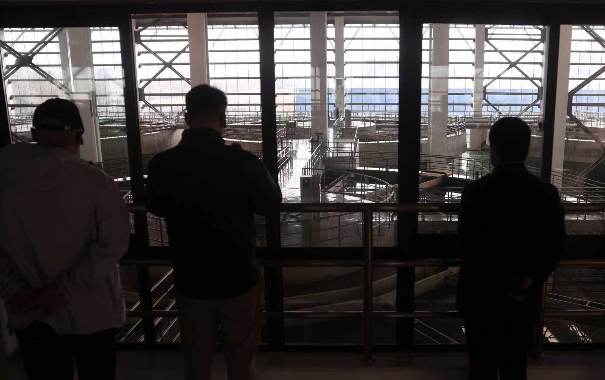 市民通过玻璃幕墙参观机械加速澄清池车间。新京报记者 李木易 摄