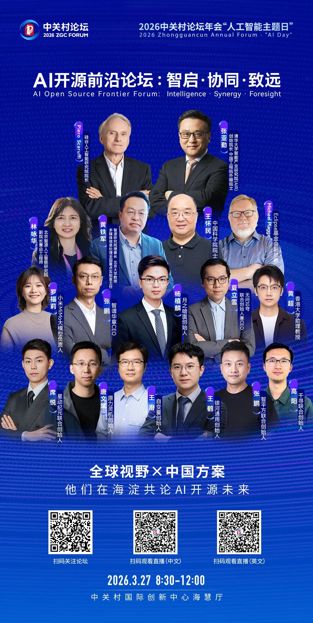3月25日至29日,第三届中关村论坛“人工智能主题日”系列活动将在中关村国际创新中心举办,设置了六场特色专题论坛,从投资、AI4S、通用智能、芯片、脑机、人才等不同方面构建人工智能产业立体生态,实现全链条、多领域覆盖。届时,中国人工智能领域顶级专家、青年产业领袖将与来自全球的科学家、投资人及国际组织代表齐聚海淀,共赴这场人工智能开年第一盛会。